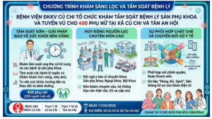 - Khám các chuyên khoa: Nội tổng quát, Nội tim mạch, Nội thần kinh, Nhi, Ngoại tổng quát, Ngoại chỉnh hình, Sản (riêng chuyên khoa Sản chỉ khám ngày thứ Bảy)