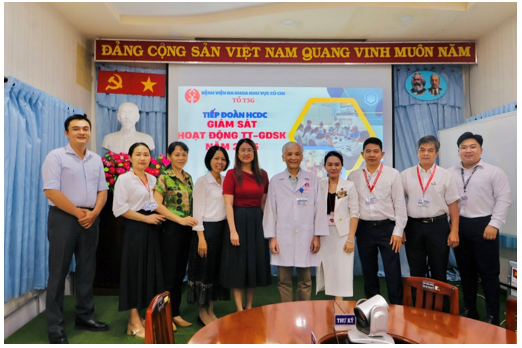 Ngày 04/7/2025, Đoàn giám sát của Trung tâm Kiểm soát bệnh tật TP. Hồ Chí Minh (HCDC) đã có buổi làm việc chính thức tại Bệnh viện Đa khoa Khu vực Củ Chi về hoạt động Truyền thông – Giáo dục sức khỏe (TT-GDSK). Kết quả, bệnh viện được ghi nhận hoàn thành 22/23 tiêu chí, phản ánh năng lực tổ chức, sự chuyên nghiệp và hiệu quả của công tác truyền thông y tế tại đơn vị.