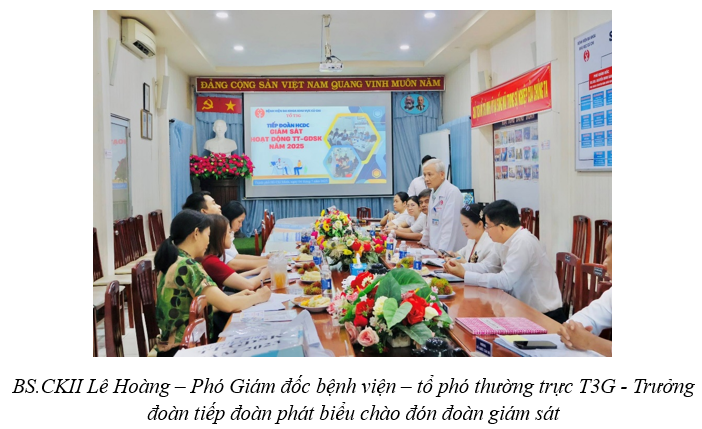 Đại diện tiếp đoàn là BS.CKII Lê Hoàng – Phó Giám đốc bệnh viện, Tổ phó thường trực T3G, cùng với sự tham gia của các Phó Giám đốc: BS.CKII Nguyễn Minh Sang, ThS. Phạm Đào Minh Tú, và ThS. Đặng Minh Lộc – Thư ký T3G, phụ trách trình bày báo cáo sơ kết. Tham dự còn có đại diện lãnh đạo các phòng chức năng (Công tác xã hội, Kế hoạch tổng hợp, Quản lý chất lượng, Tổ chức cán bộ) cùng toàn thể mạng lưới T2G tại các khoa/phòng.