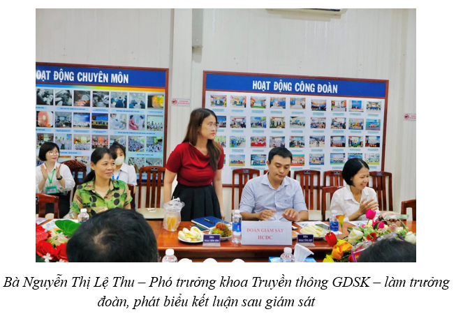 Tại buổi làm việc, đoàn giám sát do bà Nguyễn Thị Lệ Thu – Phó Trưởng khoa Truyền thông GDSK, HCDC làm trưởng đoàn, đã tiến hành kiểm tra hồ sơ minh chứng và khảo sát thực địa tại 4 khoa: Thận nhân tạo, Phụ sản, Nhi và Dinh dưỡng.