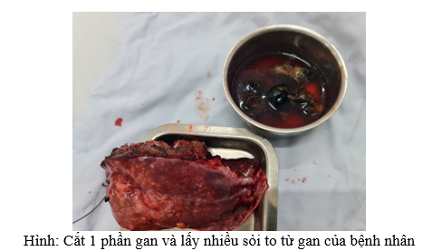 Ca phẫu thuật được thực hiện bởi BSCKII. Trịnh Minh Trí – Trưởng khoa Ngoại Tổng quát, BSCKI.Vũ Xuân Dũng, BS. Nguyễn Mạnh Cần, ê kíp Gây mê- Hồi sức do BS. Phạm Trung Tổng thực hiện. Sau gần 2 tiếng phẫu thuật các bác sĩ đã tiến hành cắt hạ phân thùy 2-3, lấy sỏi đường mật cho bệnh nhân, kiểm tra bằng ống nội soi mềm sạch sỏi đường mật trong và ngoài gan, sau đó tiến hành khâu cầm máu gan và đường mật cho bệnh nhân.