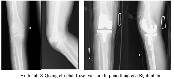 Sau phẫu thuật, tình trạng sức khỏe bệnh nhân ổn định, Bệnh nhân đã giảm đau nhiều, biên độ gập duỗi gối tốt. Hiện tại bệnh nhân đi đứng chịu lực hoàn toàn trên khớp gối nhân tạo.