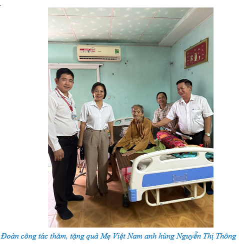 Tại nhà mẹ Việt Nam anh hùng, BSCKII. Nguyễn Thành Phương, Giám đốc bệnh viện đã ân cần thăm hỏi, tặng quà, chúc Mẹ thật nhiều sức khỏe để vui sống với con cháu, đồng thời bày tỏ lòng thành kính, biết ơn sâu sắc đối với công lao to lớn của các mẹ và các thế hệ cha anh đi trước, các anh hùng liệt sĩ đã hy sinh vì sự nghiệp giải phóng dân tộc, thống nhất đất nước.