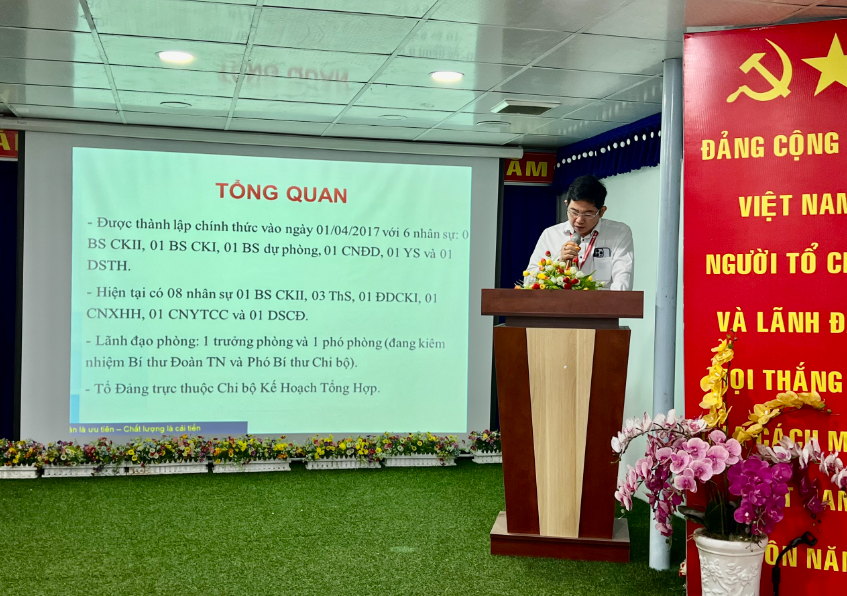 Trong năm qua, tập thể cán bộ quản lý, nhân viên 29 khoa, phòng của Bệnh viện Đa khoa Khu vực Củ Chi đã nỗ lực hết sức mình trong thực hiện nhiệm vụ. Mỗi khoa, phòng với nhiệm vụ cụ thể của mình, dưới sự chỉ đạo, điều hành của Ban Giám đốc Bệnh viện đã tập trung thực hiện nhiều biện pháp để nâng cao chất lượng chăm sóc sức khỏe nhân dân, từ việc nâng cao y đức, tay nghề của đội ngũ Thầy thuốc đến việc đầu tư trang bị các máy móc hiện đại, tăng cường ứng dụng công nghệ thông tin, cải cách thủ tục hành chính trong việc tiếp nhận, xử lý bệnh … để đáp ứng một cách tốt nhất nhu cầu của người dân khi đến khám, chữa bệnh. Do vậy, thời gian qua, số lượng người dân đến để được chăm sóc sức khỏe tại Bệnh viện Đa khoa Khu vực Củ Chi ngày một tăng lên. Được sự thống nhất của Ban Giám đốc Bệnh viện, hội nghị đã được lắng nghe 2 bài tham luận do BS.CKII Nguyễn Minh Sang – Trưởng phòng Quản lý chất lượng Bệnh viện báo cáo những kết quả đạt được trong tham mưu thực hiện các tiêu chí nâng cao chất lượng Bệnh viện. Báo cáo của phòng Quản lý chất lượng cũng được xem là kết quả của sự nỗ lực phấn đấu của 29 khoa, phòng Bệnh viện trong năm 2023. Bên cạnh đó DSCKI. Nguyễn Tấn Phương đại diện Chi bộ Dược báo cáo tham luận về kết quả công tác lãnh đạo thực hiện nhiệm vụ chính trị của chi bộ mình để nhân rộng phương thức sinh hoạt chi bộ hiệu quả.