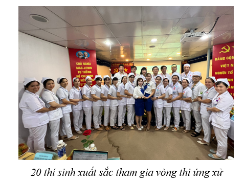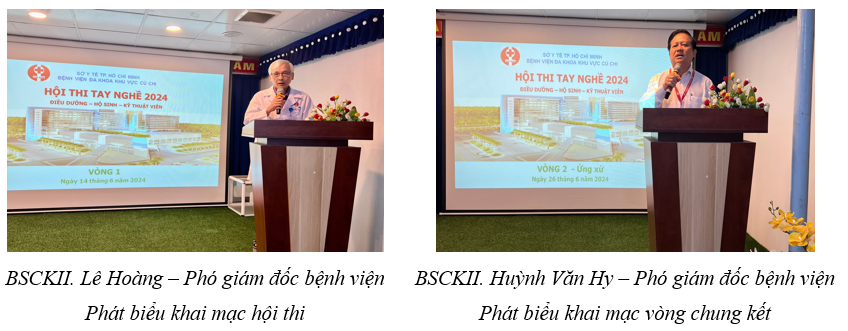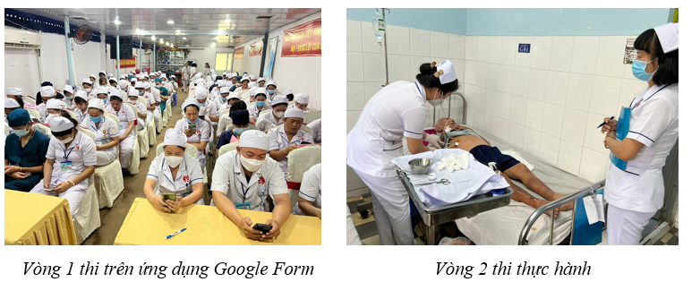 Hội thi năm nay được tổ chức gồm có 3 vòng: vòng 1, được diễn ra vào ngày 14/6/2024, các thí sinh dự thi 50 câu hỏi trắc nghiệm trong 30 phút trên ứng dụng Google form. Các thí sinh dự thi vòng 1 được chia thành 6 đợt, với số lượng 90 thí sinh/ mỗi đợt, các thí sinh tập trung về hội trường bệnh viện dự thi để đảm bảo công tác coi thi được tiến hành tốt nhất. Đây là năm đầu tiên các thí sinh thi trên ứng dụng Google form nhằm tiết giảm kinh phí, ứng dụng công nghệ thông tin, góp phần cải cách hành chính của đơn vị. Đồng thời cũng giúp cho công tác ra đề được kiểm soát chặt chẽ, tiết kiệm thời gian và công sức chấm thi, đảm bảo tính khách quan khi chấm điểm.
