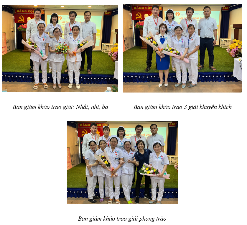 Ban giám khảo cuộc thi năm nay là lãnh đạo các phòng chức năng và Đoàn thể gồm có: (1) BSCKI. Lê Văn Định – Chủ tịch CĐCS, Trưởng phòng Tổ chức cán bộ; (2) BSCKII. Nguyễn Thế Linh – Trưởng phòng Kế hoạch tổng hợp; (3) BSCKII. Nguyễn Minh Sang – Trưởng phòng Quản lý chất lượng; (4)BS. Nguyễn Đoàn Huy – Phó bí thư Đoàn cơ sở; (5) ĐDCKI. Nguyễn Thị Hương Thảo – Trưởng phòng Điều dưỡng.