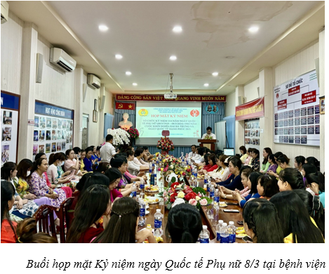 Đại diện cho tập thể viên chức, người lao động nữ của Bệnh viện, CN. Trà Thị Tiền – Trưởng Ban nữ công – Phó trưởng phòng CTXH đã tiếp thu ý kiến chỉ đạo của Đảng Ủy, Ban giám đốc, chia sẻ niềm xúc động và biết ơn trước sự quan tâm, trân trọng, yêu quý từ phía Đảng ủy, Ban Giám đốc, cùng tập thể nam đã dành cho cán bộ viên chức lao động nữ tại bệnh viện. Đáp lại những tình cảm đó, mỗi nữ viên chức đều tự nhủ cùng nhau phát huy sức mạnh, xây dựng tinh thần đoàn kết trong tập thể và hoàn thành xuất sắc các nhiệm vụ được giao, phấn đấu cùng Bệnh viện vượt qua mọi thử thách và vươn tới những thành công mới.