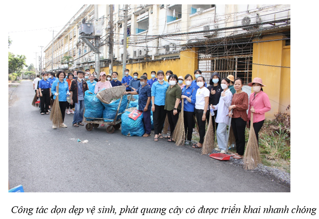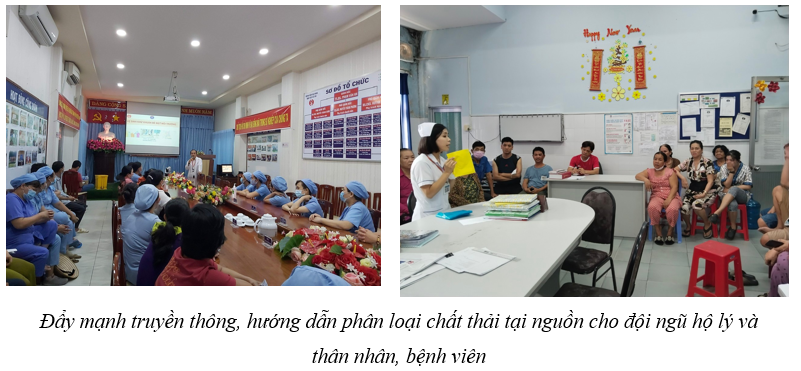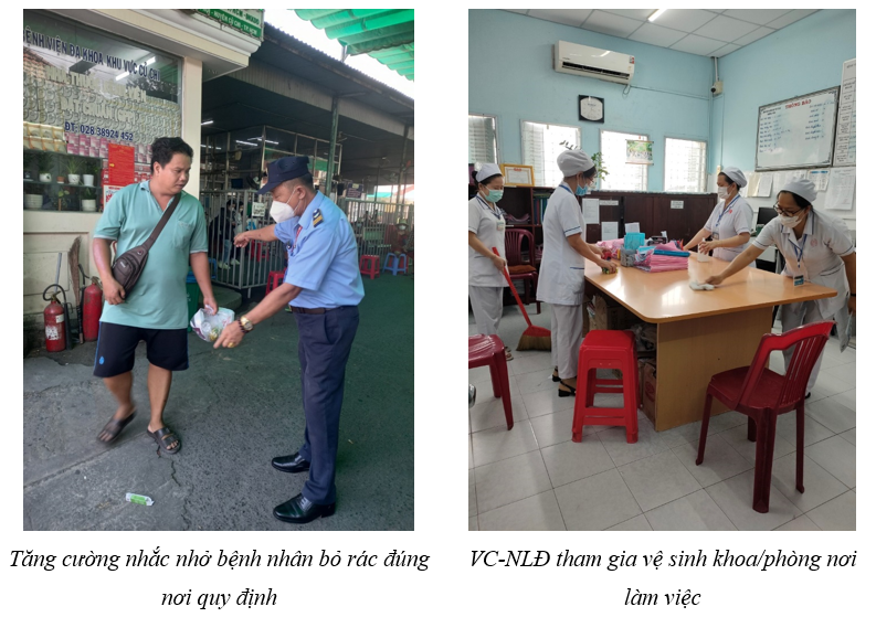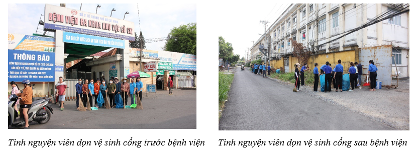 Bên cạnh đó, các tình nguyện viên còn vận động đoàn viên công đoàn, VC-NLĐ tham gia vệ sinh khoa/phòng nơi làm việc, tăng cường kiểm tra an toàn điện, các trang thiết bị nhằm đảm bảo năng suất lao động và an toàn lao động cho cán bộ, nhân viên. Đẩy mạnh tuyên truyền, vận động bệnh nhân và thân nhân tăng cường ý thức gìn giữ vệ sinh chung bằng hình thức vận động, tuyên truyền,… hướng dẫn các vị trí thùng rác, màu sắc các thùng rác để phân loại rác tại nguồn và hạn chế tối đa việc vứt rác thải sinh hoạt từ lầu cao xuống dưới đất ở các dãy tòa nhà phía sau bệnh viện. Đồng thời, tuyên truyền, hướng dẫn bệnh nhân và thân nhân thực hiện phân loại rác đồng thời hợp tác với nhân viên y tế giữ gìn vệ sinh; bảo vệ cây xanh tại các khoa/phòng, trong khuôn viên và trước cổng bệnh viện.