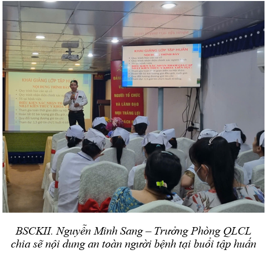 An toàn người bệnh là ưu tiên hàng đầu của các cơ sở y tế, bao gồm cả Bệnh viện Đa khoa Khu vực Củ Chi. Đây là yếu tố then chốt giúp giảm thiểu rủi ro và nâng cao chất lượng dịch vụ y tế. Hưởng ứng “Ngày An toàn người bệnh Thế giới” 17/9/2024, chủ đề “Nâng cao năng lực chẩn đoán vì sự An toàn của người bệnh” với khẩu hiệu “ Chẩn đoán chính xác, điều trị an toàn”. Phòng Quản lý Chất lượng – Bệnh viện ĐKKV Củ Chi tổ chức chuỗi tập huấn nhằm cung cấp kiến thức và kỹ năng cho hơn 807 cán bộ nhân viên về các khía cạnh quan trọng của an toàn người bệnh, như quản lý nguy cơ sự cố y khoa, quy trình báo cáo sự cố, nhận diện chính xác người bệnh và quy trình 5S.