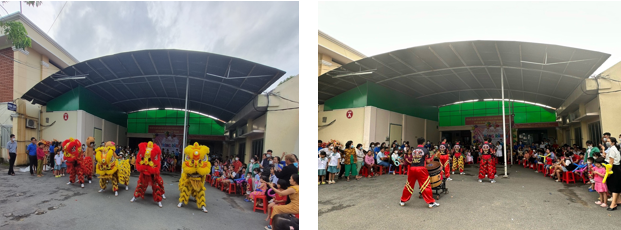 Chương trình năm nay được chuẩn bị chu đáo, có nhiều nội dung hấp dẫn dành cho các em thiếu nhi như: Đố vui có thưởng, cắt tóc miễn phí, tổng kết học bổng Nguyễn Đức Cảnh và học sinh giỏi năm 2023, múa lân sư rồng, xiếc ảo thuật, tặng quà cho các em… Đặc biệt những tiết mục múa lân, xiếc, ảo thuật mà Ban tổ chức chuẩn bị luôn nhận được sự chào đón nồng nhiệt và tạo ra không khí vui tươi, tràn đầy tiếng cười và những tràn pháo tay tán thưởng của các bé và tất cả những người tham gia.
