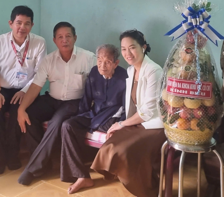 Hòa trong không khí thiêng liêng của những ngày lễ lớn — Kỷ niệm 50 năm Ngày Giải phóng miền Nam, thống nhất đất nước (30/4/1975 – 30/4/2025) và Ngày Quốc tế Lao động 1/5, ngày 28/4/2025, Đoàn lãnh đạo Bệnh viện Đa khoa Khu vực Củ Chi đã tổ chức đến thăm hỏi, tri ân và tặng quà cho Mẹ Việt Nam Anh hùng Nguyễn Thị Thông, 107 tuổi, hiện đang sinh sống tại xã Tân Thạnh Tây, huyện Củ Chi, TP. Hồ Chí Minh.