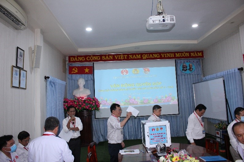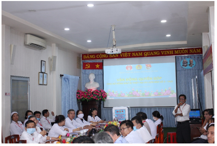 Tham dự buổi vận động quyên góp, có sự hiện diện BSCKII. Nguyễn Thành Phương – Bí thư Đảng ủy, Giám đốc bệnh viện; BSCKII. Huỳnh Văn Hy – Phó Bí thư Đảng ủy, Phó giám đốc bệnh viện; BSCKII. Lê Hoàng – Thường vụ Đảng ủy, Phó giám đốc bệnh viện; BSCKI. Lê Văn Định – Chủ tịch Công Đoàn cơ sở; BS. Nguyễn Đoàn Huy – Bí thư Đoàn cơ sở cùng lãnh đạo 29 khoa/phòng, tổ trưởng các tổ công Đoàn; Điều dưỡng trưởng – KTV trưởng – Hộ sinh trưởng các khoa tham dự.