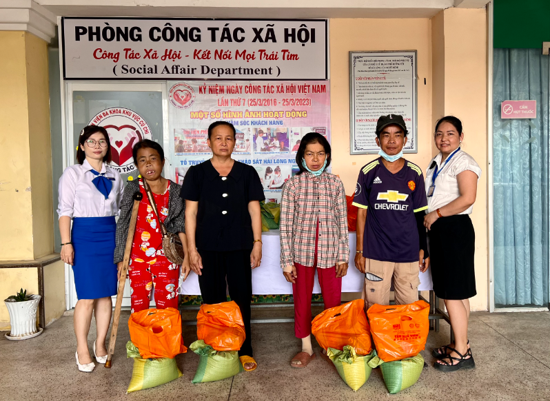 Để chia sẻ với bệnh nhân những khó khăn trong cuộc sống, đặc biệt những ngày giáp Tết còn phải nằm viện điều trị bệnh, chưa thể đoàn viên cùng gia đình đón Tết. Trong dịp Tết này phòng CTXH bệnh viện đã vận động mạnh thường quân trao tổng cộng 410 phần quà, chia làm nhiều đợt với tổng số tiền gần 100.000.000 đồng