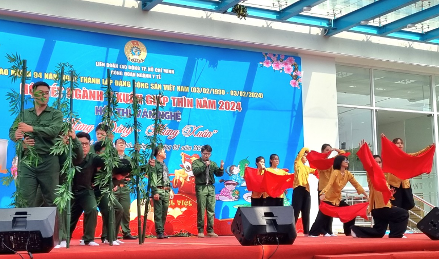 Bên cạnh các hoạt động hội Tết, đội văn nghệ bệnh viện cùng Công Đoàn cơ sở đã sôi nổi tham gia dự thi tiết mục văn nghệ tốp ca múa “Đường chúng ta đi” để lại nhiều ấn tượng với các đơn vị bạn.