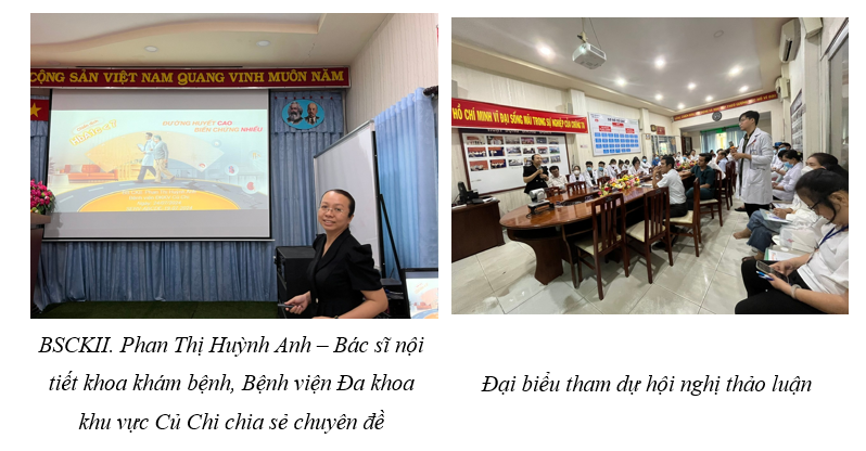 Báo cáo tại buổi sinh hoạt, BSCKII. Phan Thị Huỳnh Anh – Bác sĩ nội tiết Khoa Khám bệnh, Bệnh viện Đa khoa khu vực Củ Chi có nhiều năm kinh nghiệm khám chữa bệnh trong lĩnh vực đái tháo đường và đã chia sẻ với hội nghị bức tranh tổng quát về bệnh đái tháo đường hiện nay về vai trò của HbA1c và các tiêu chí điều trị phù hợp với mục tiêu. Bên cạnh đó cũng cho thấy thực trạng biến chứng hiện nay và giải pháp phù hợp để đảm bảo bệnh nhân được điều trị một cách phù hợp và cá thể hóa. Sau bài trình bày của BS. Huỳnh Anh đã nhận được nhiều sự quan tâm, đặt câu hỏi thảo luận sôi nổi, nhằm giải đáp những thắc mắc và trao đổi với đại biểu tham dự về các vấn đề chuyên môn có liên quan đến công tác phối hợp trong khám chữa bệnh giữa các khoa, phòng chuyên môn.