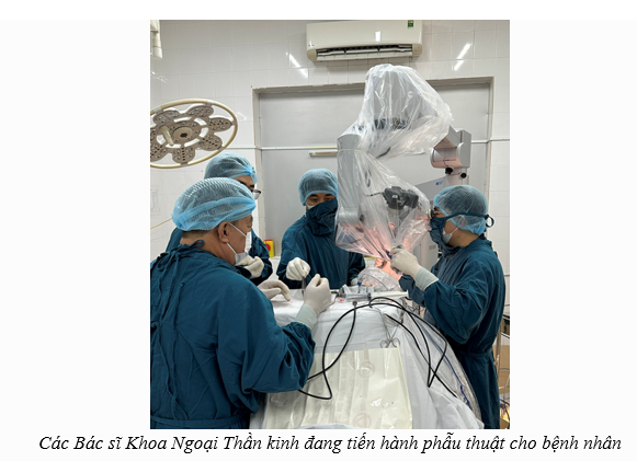 Ekip phẫu thuật là các bác sĩ chuyên khoa Ngoại Thần Kinh gồm: BSCKII. Nguyễn Thanh Liêm – Trưởng khoa Ngoại Thần kinh, BSCKI Tạ Hiền Fortuny, BS Trần Dương Lợi, ekip gây mê BSCKI Nguyễn Thanh Trúc, Bùi Nguyễn Hưng Thịnh…. Sau khi tiến hành gây mê nội khí quản, dưới sự hỗ trợ của kính vi phẫu, các bác sĩ tiến hành mở sọ, khâu treo màng cứng, lấy trọn khối u ra khỏi sọ não bệnh nhân. Êkip mổ đã bằng mọi cách bảo tồn, hạn chế tối đa vùng bóc u tránh các tổn thương, giúp người bệnh mau chóng hồi phục.