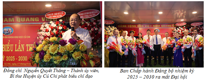 Phát biểu chỉ đạo tại Đại hội, đồng chí Nguyễn Quyết Thắng – Thành ủy viên, Bí thư Huyện ủy Củ Chi đã ghi nhận và đánh giá cao những kết quả mà Đảng bộ Bệnh viện đã đạt được trong nhiệm kỳ qua, đồng thời định hướng một số nội dung quan trọng để Ban Chấp hành nhiệm kỳ mới tập trung thực hiện, đưa Nghị quyết Đại hội vào thực tiễn bằng những hành động cụ thể, hiệu quả.