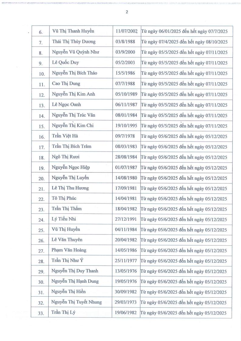 Danh sách người hoàn thành quá trình thực hành khám bệnh, chữa bệnh từ 05/08/2025 đến 06/02/2026