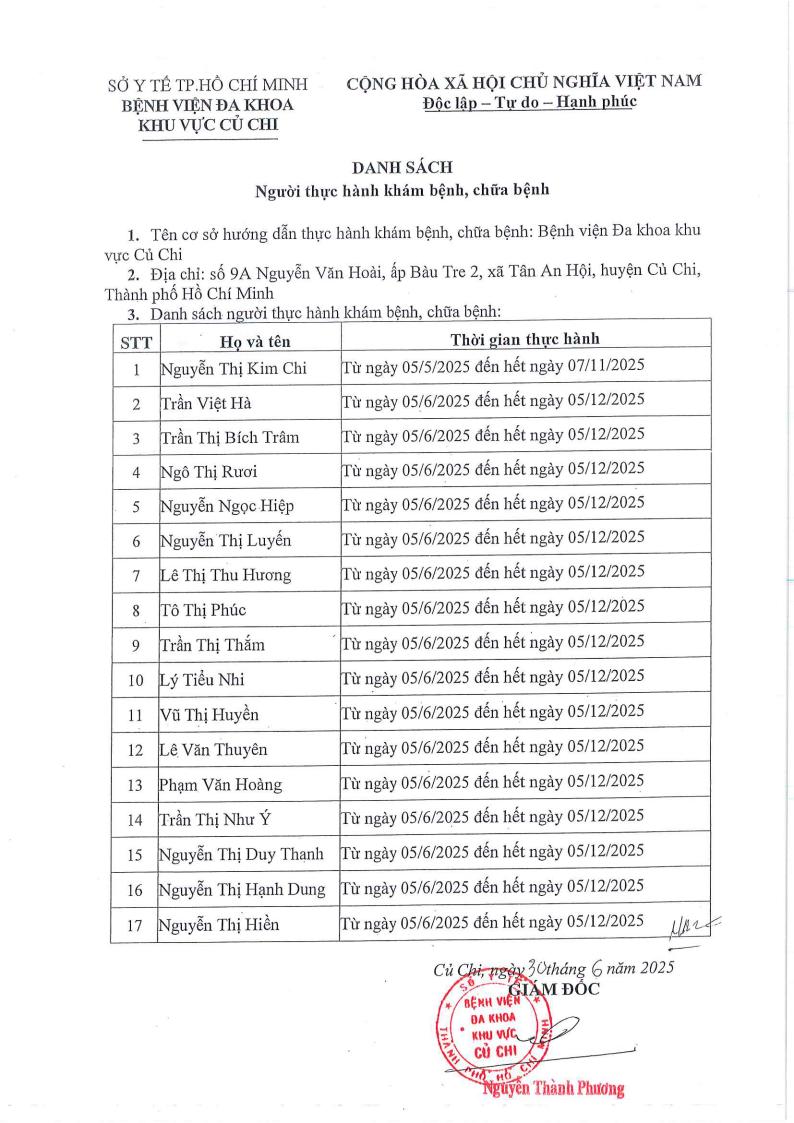 Danh sách người thực hành khám bệnh, chữa bệnh