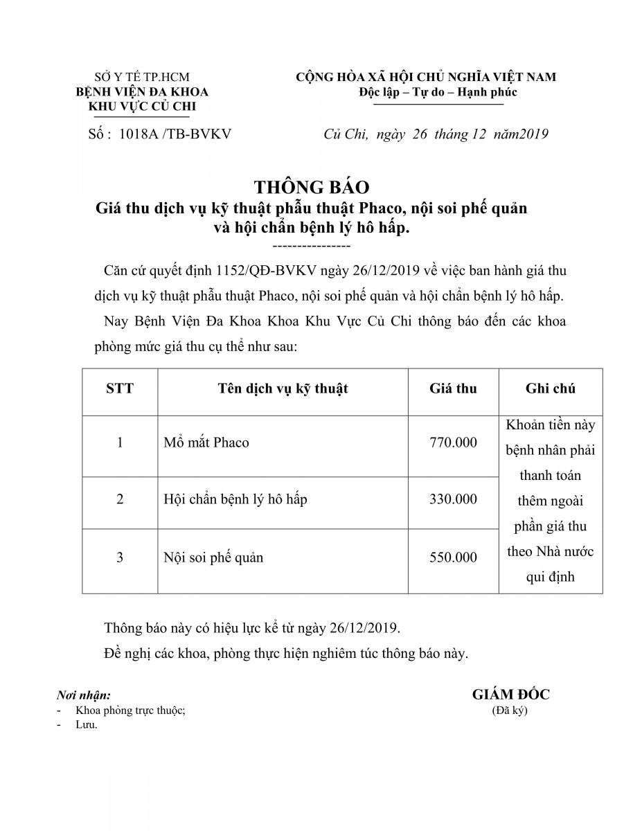 Giá thu dịch vụ kỹ thuật phẫu thuật Phaco, nội soi phế quản và hội chẩn bệnh lý hô hấp