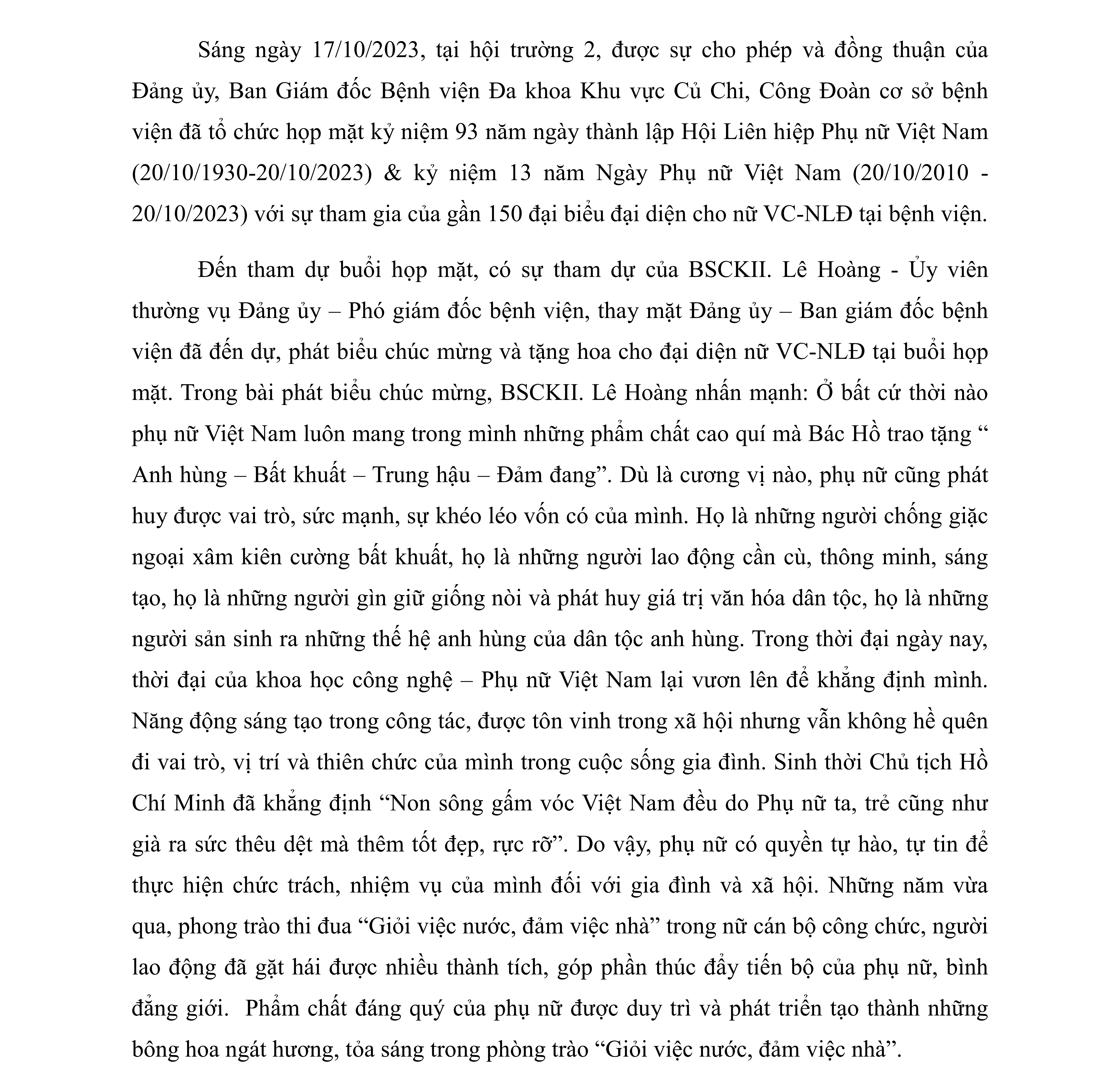 HỌP MẶT KỶ NIỆM 93 NĂM NGÀY THÀNH LẬP HỘI LIÊN HIỆP PHỤ NỮ VIỆT NAM (20/10/1930-20/10/2023) VÀ KỶ NIỆM 13 NĂM NGÀY PHỤ NỮ VIỆT NAM (20/10/2010 – 20/10/2023)