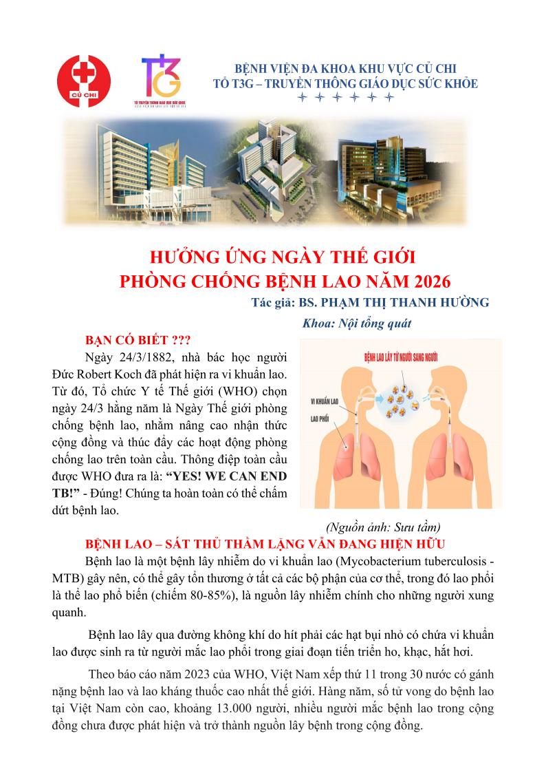HƯỞNG ỨNG NGÀY THẾ GIỚI PHÒNG CHỐNG BỆNH LAO NĂM 2026