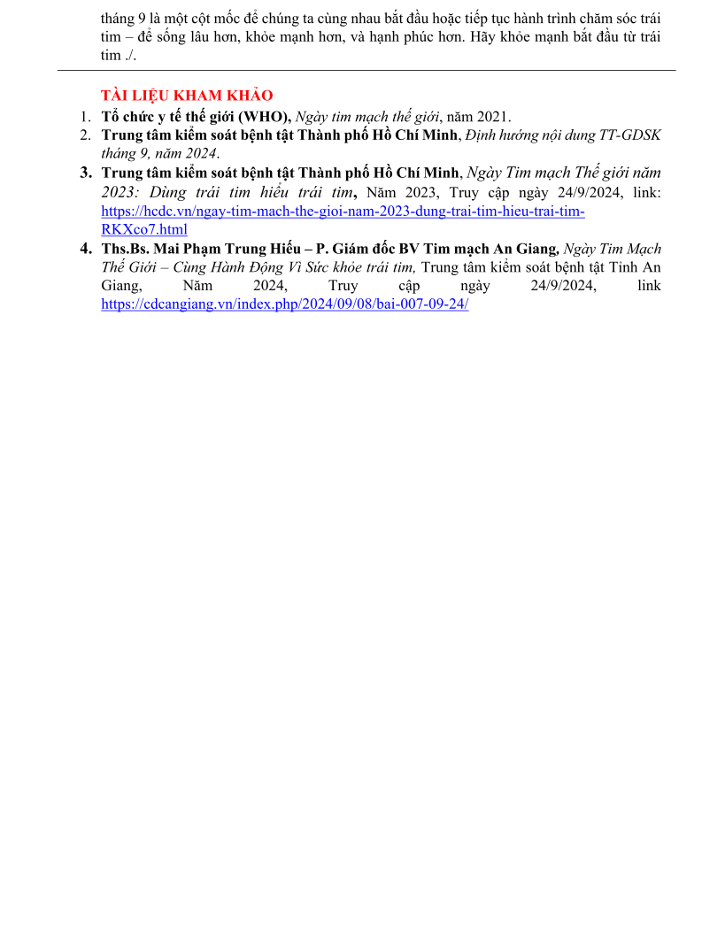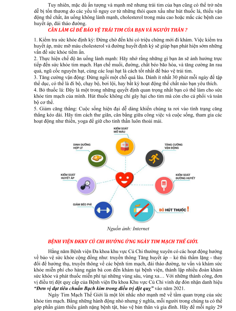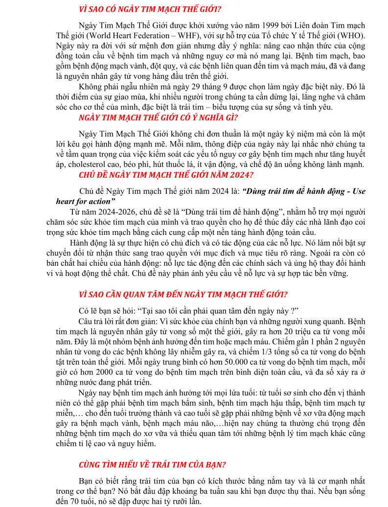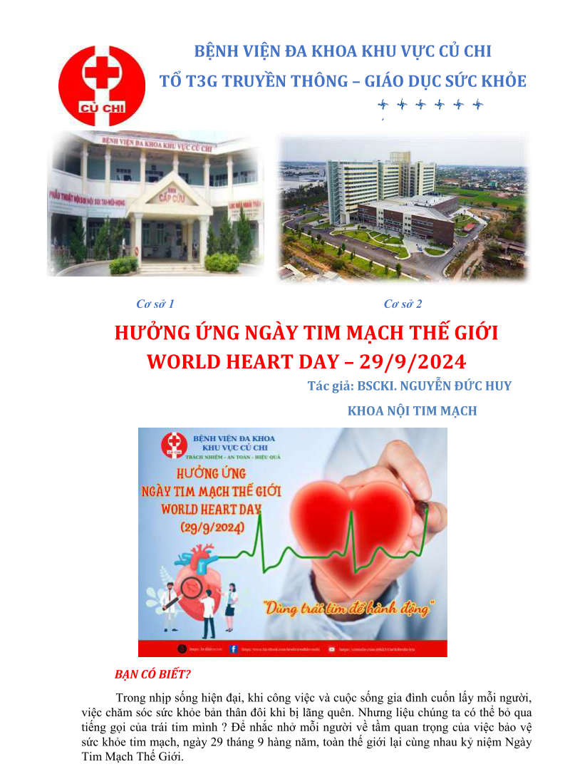 HƯỞNG ỨNG NGÀY TIM MẠCH THẾ GIỚI WORLD HEART DAY – 29/09/2024