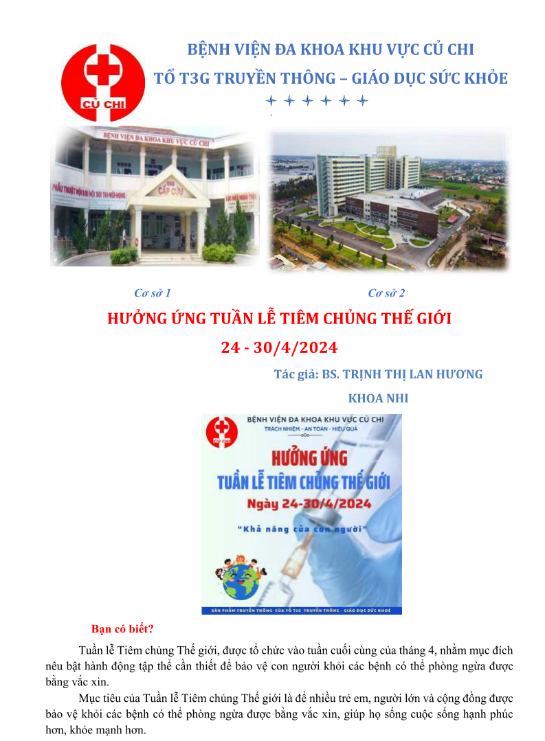 Trang chủ » Tin tức » Truyền Thông Giáo Dục Sức Khỏe » HƯỞNG ỨNG TUẦN LỄ TIÊM CHỦNG THẾ GIỚI