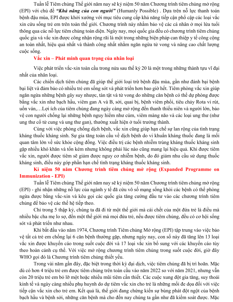 HƯỞNG ỨNG TUẦN LỄ TIÊM CHỦNG THẾ GIỚI