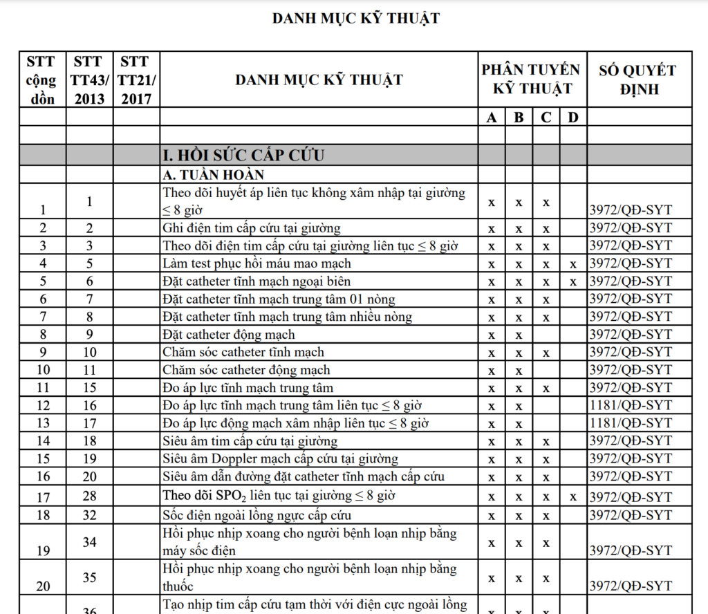 Kỹ thuật và phân tuyến kỹ thuật trong khám chữa bệnh Ban hành kèm theo Thông tư số 43/2013, Thông tư số 21/2017 của Bộ Y Tế