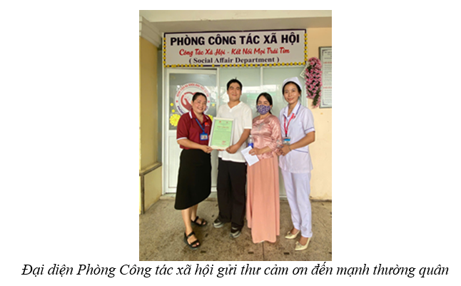 Vừa qua, Phòng Công tác Xã hội của bệnh viện đã tiếp nhận khoản hỗ trợ trị giá 80.000.000 đồng (tám mươi triệu đồng) từ anh Huỳnh Thanh Quang – một mạnh thường quân giàu lòng nhân ái, luôn dành trọn tình cảm cho người bệnh nghèo. Khoản hỗ trợ này đã được đại diện Phòng Công tác Xã hội phối hợp cùng anh Quang trao tận tay đến những người bệnh đang điều trị tại các khoa: Khoa Thận, Khoa Nhi và Khoa Ngoại Chỉnh hình.