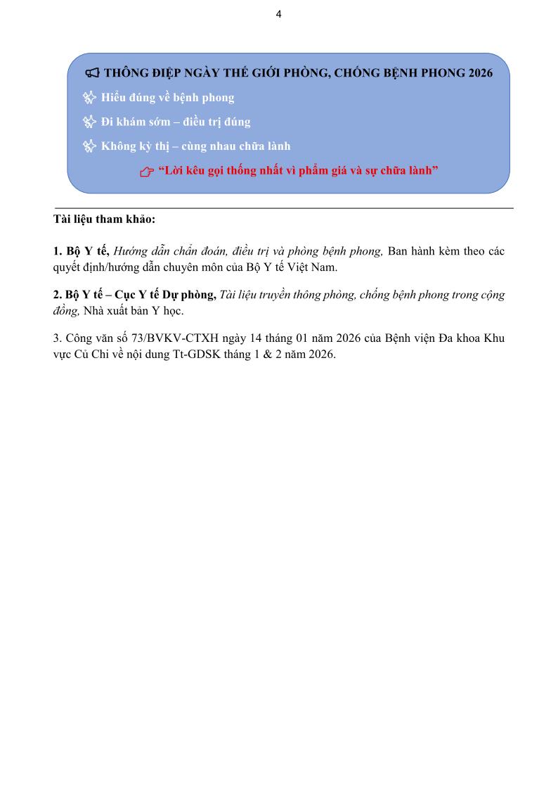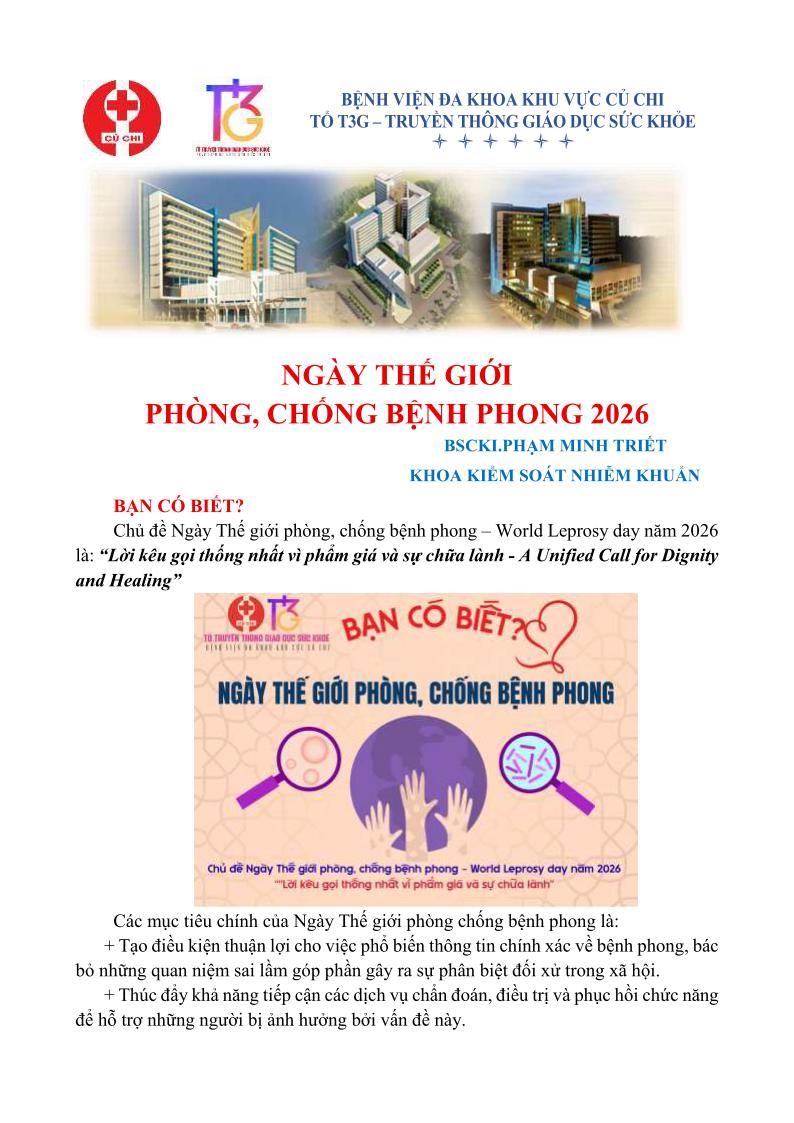 NGÀY THẾ GIỚI PHÒNG, CHỐNG BỆNH PHONG 2026