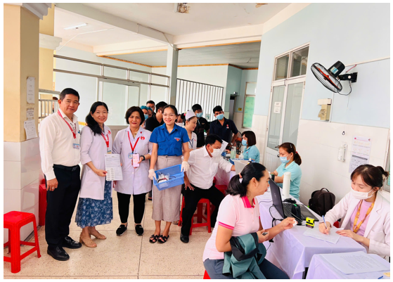 Buổi hiến máu có sự tham dự, động viên của BSCKII. Nguyễn Minh Sang – Phó Giám đốc Bệnh viện, DSCKI. Nguyễn Thị Ngọc Hoa – Phó Chủ tịch Công Đoàn cơ sở, Phó Trưởng Khoa Dược. Các lãnh đạo bệnh viện không chỉ đến thăm hỏi, động viên mà còn trực tiếp tham gia hiến máu, lan tỏa tinh thần tiên phong trong nghĩa cử nhân đạo này.