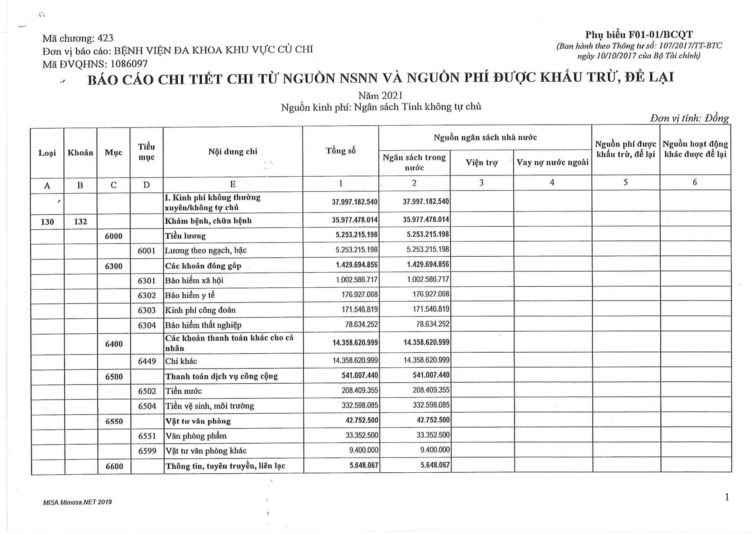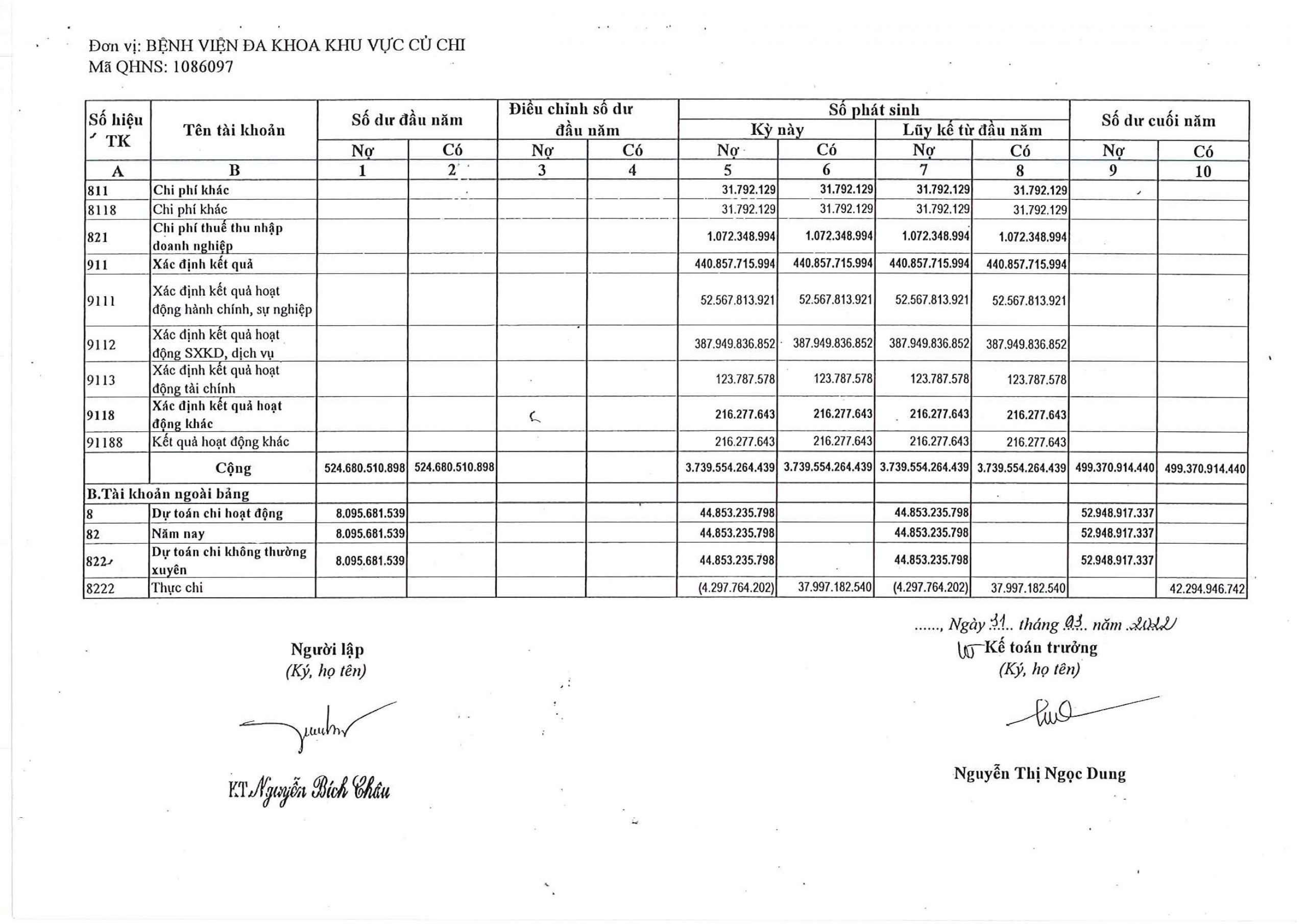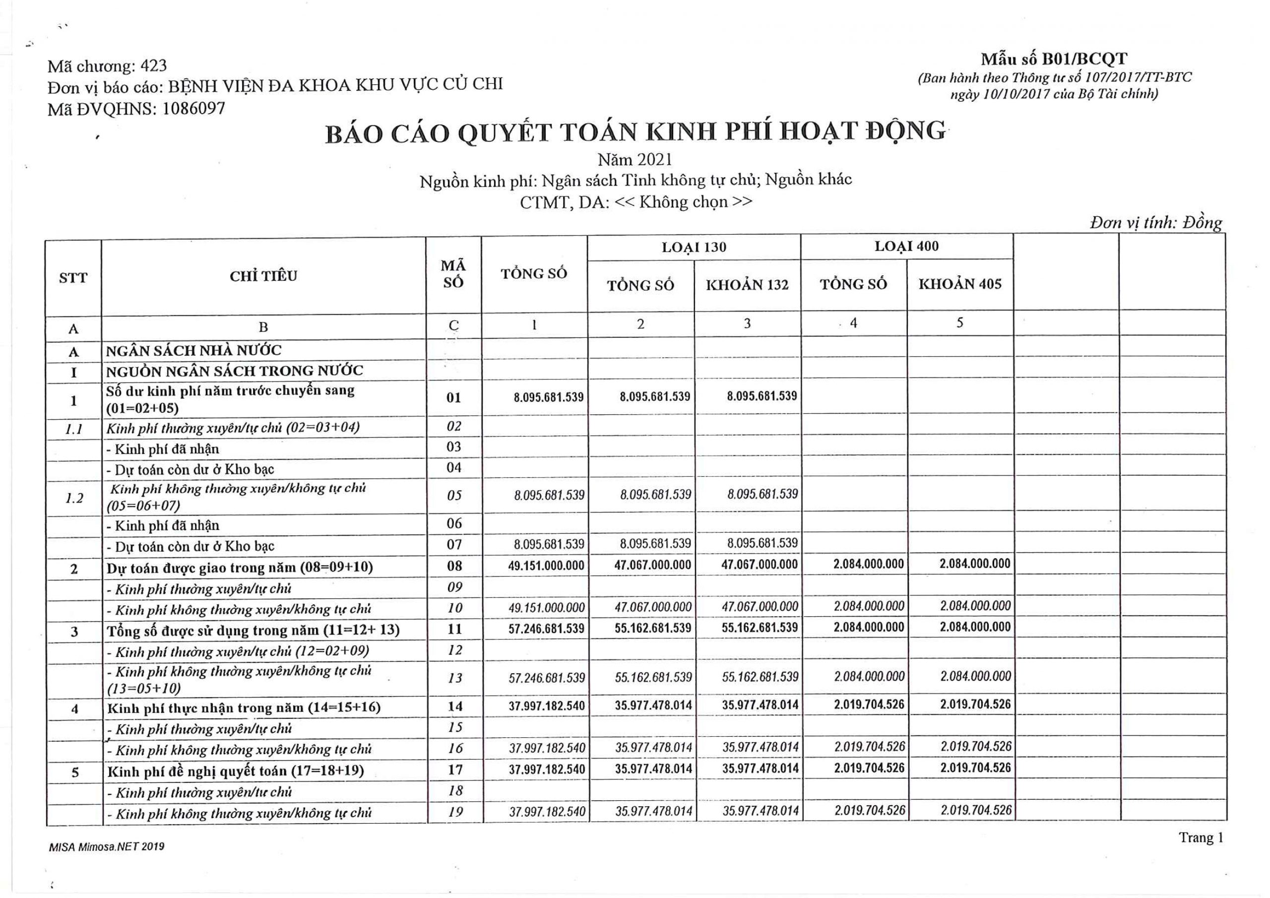 THÔNG BÁO CÔNG KHAI QUYẾT TOÁN NGÂN SÁCH NĂM 2021