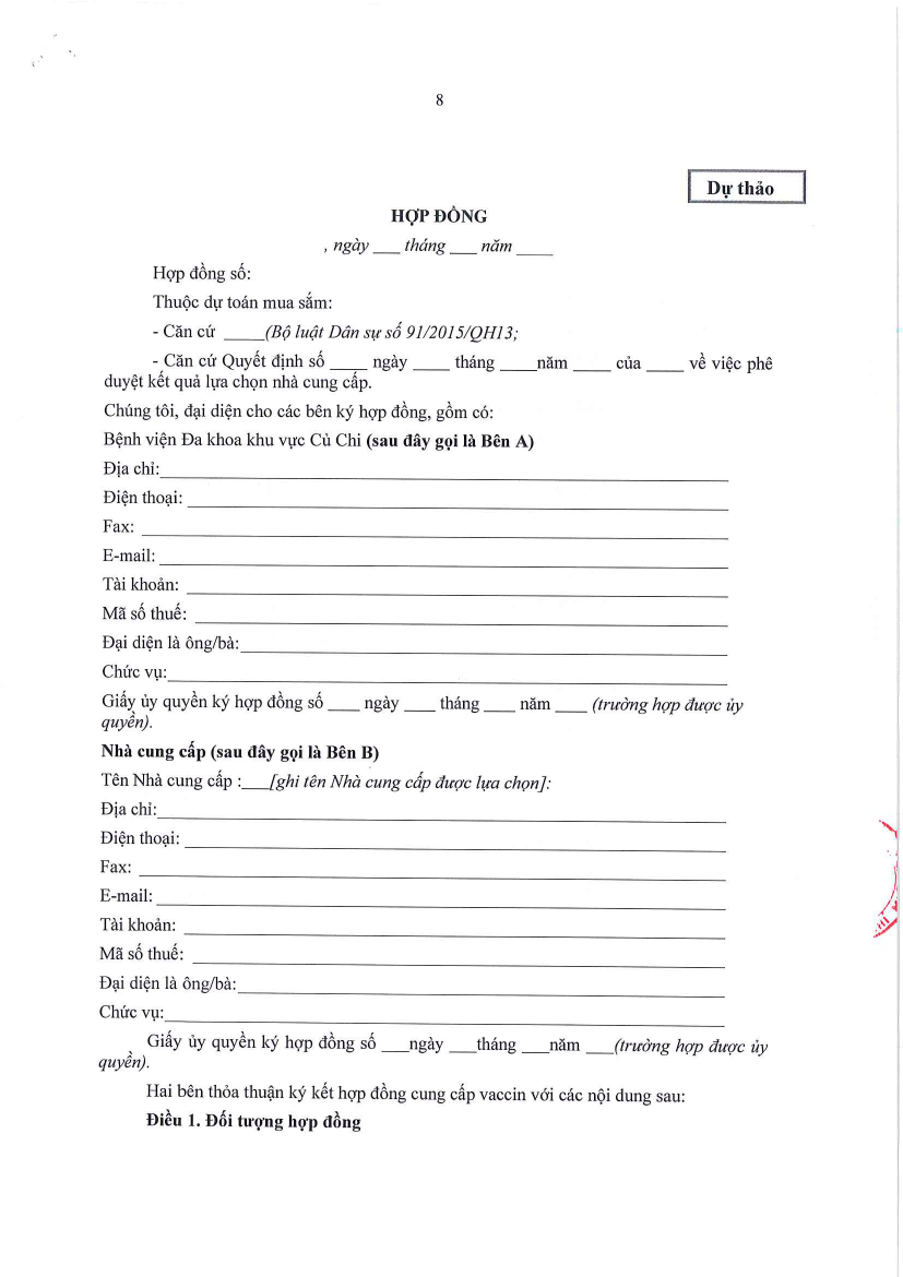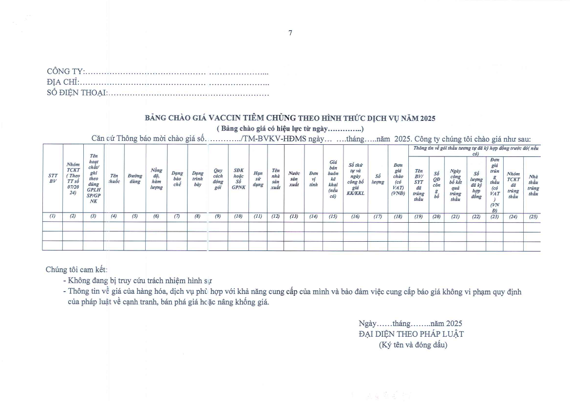 Thư mời báo giá (43/TM-BVKV-HCQT)