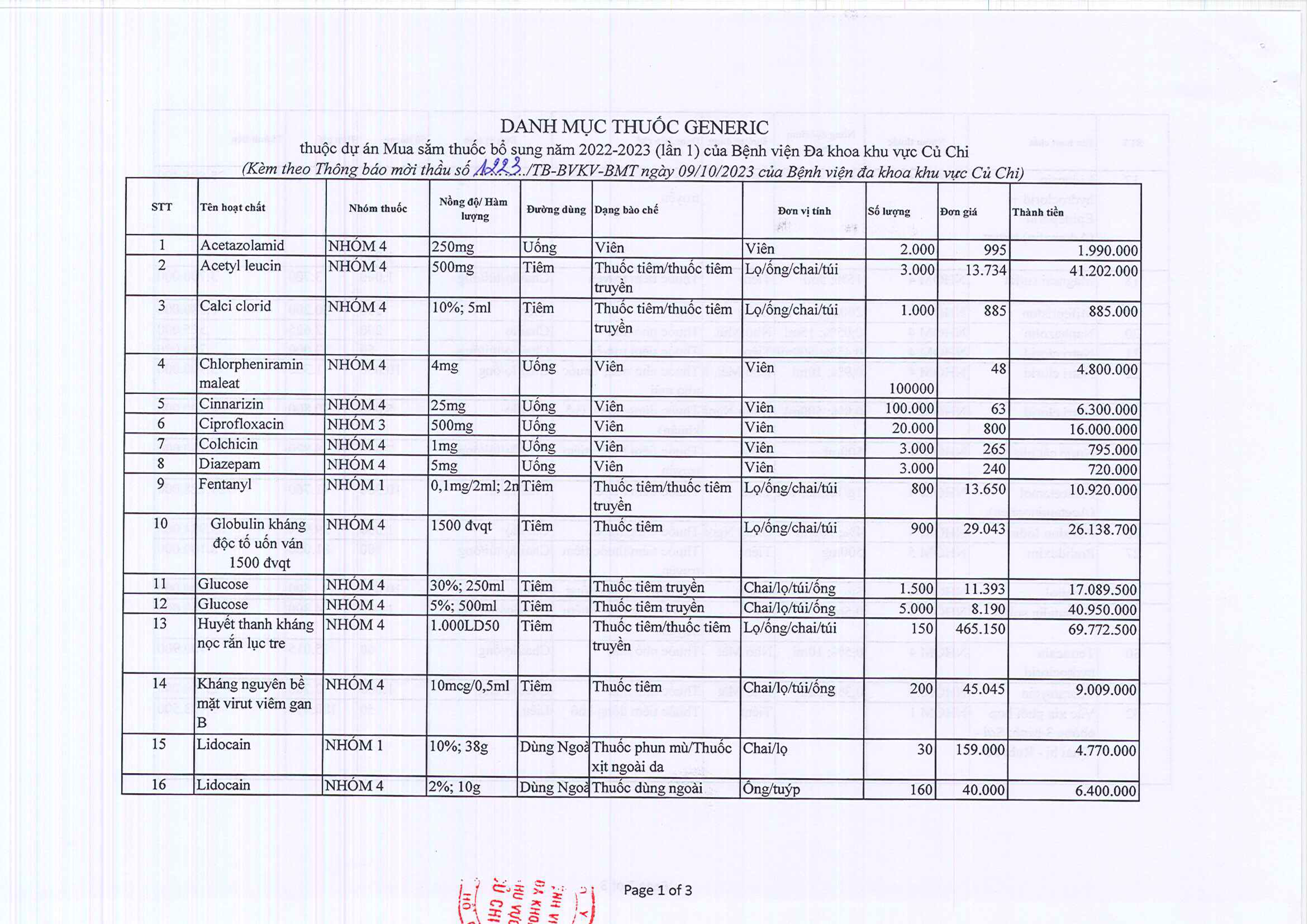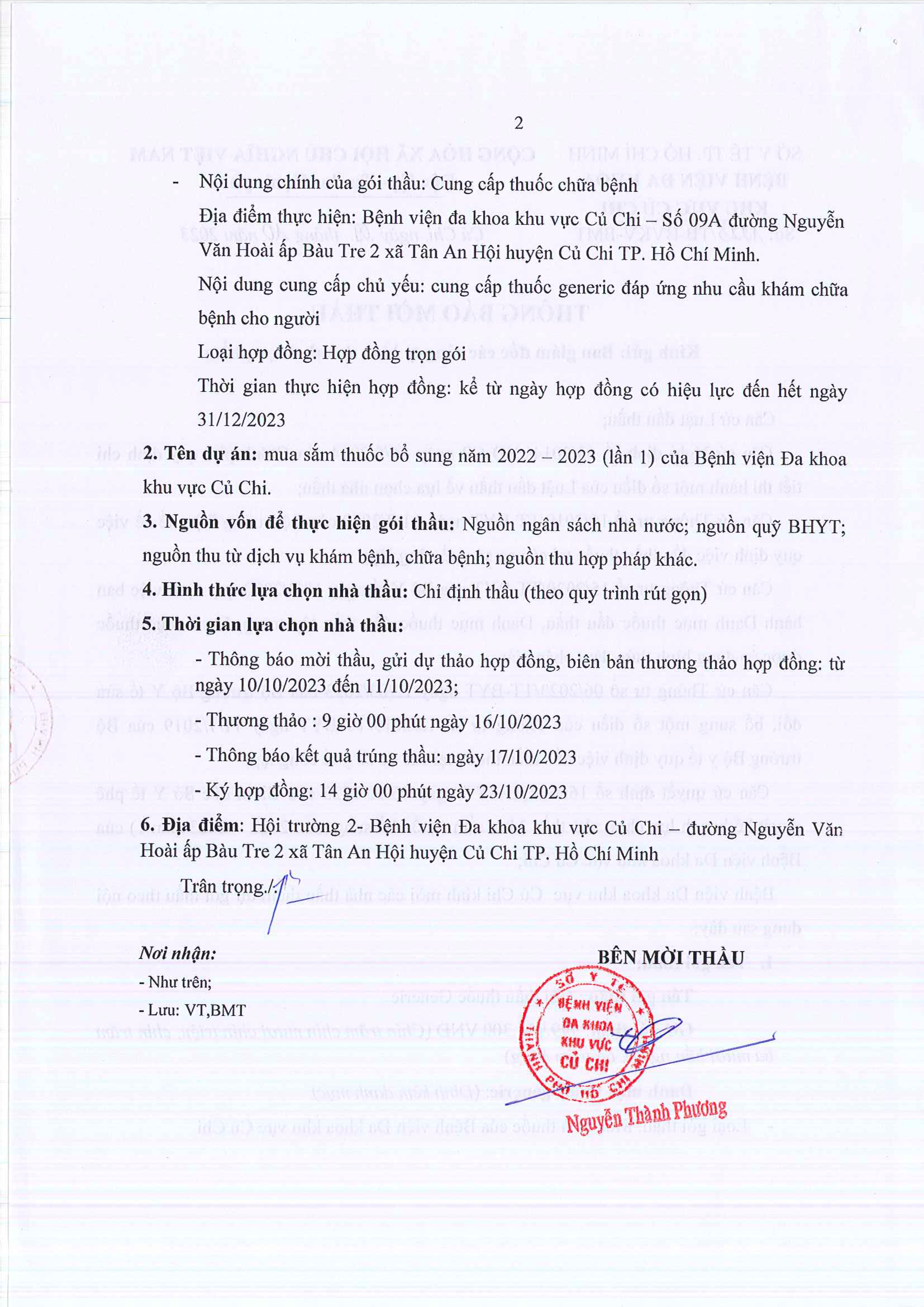 Thông báo mời thầu (1223/TB-BVKV-BMT)