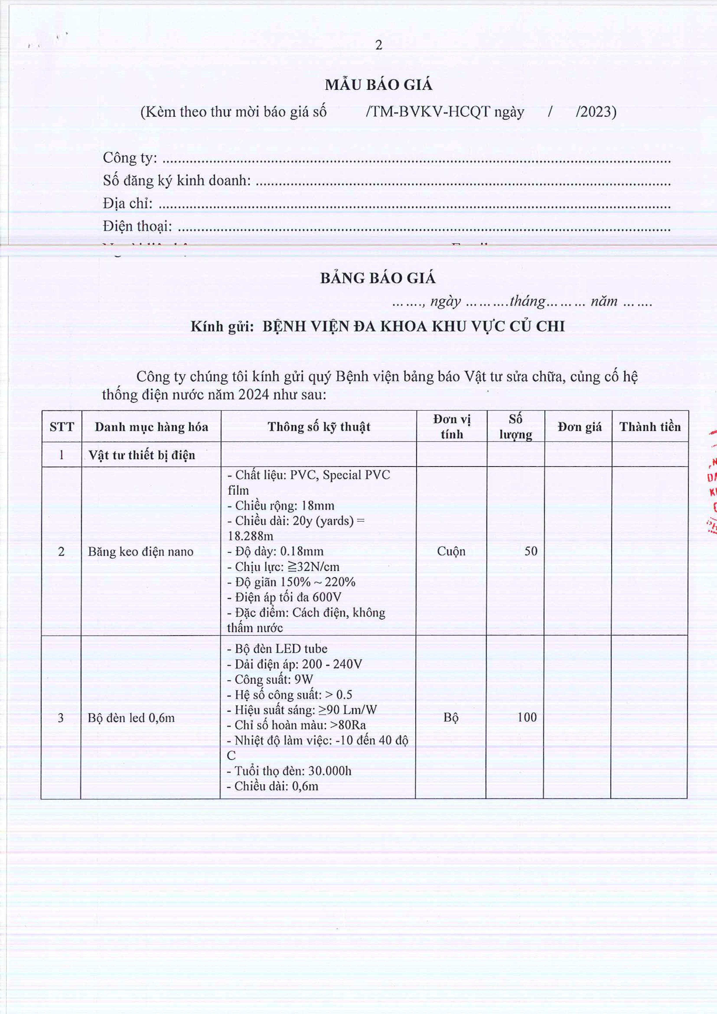 • Thư mời báo giá (136/TM-BVKV) Chức năng bình luận bị tắt ở Thư mời báo giá (136/TM-BVKV)