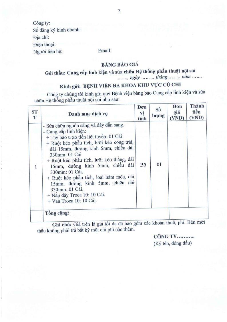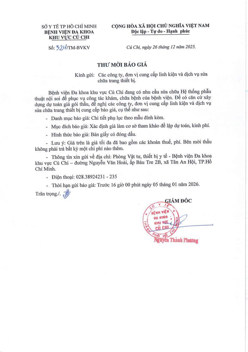 Thư mời báo giá (57/TM-BVKV-HCQT)
