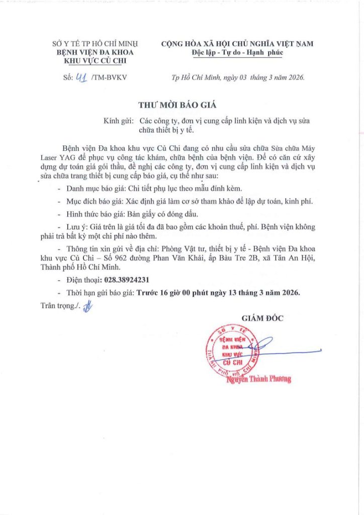 • Thư mời báo giá (55/TM-BVKV) Chức năng bình luận bị tắt ở Thư mời báo giá (55/TM-BVKV)