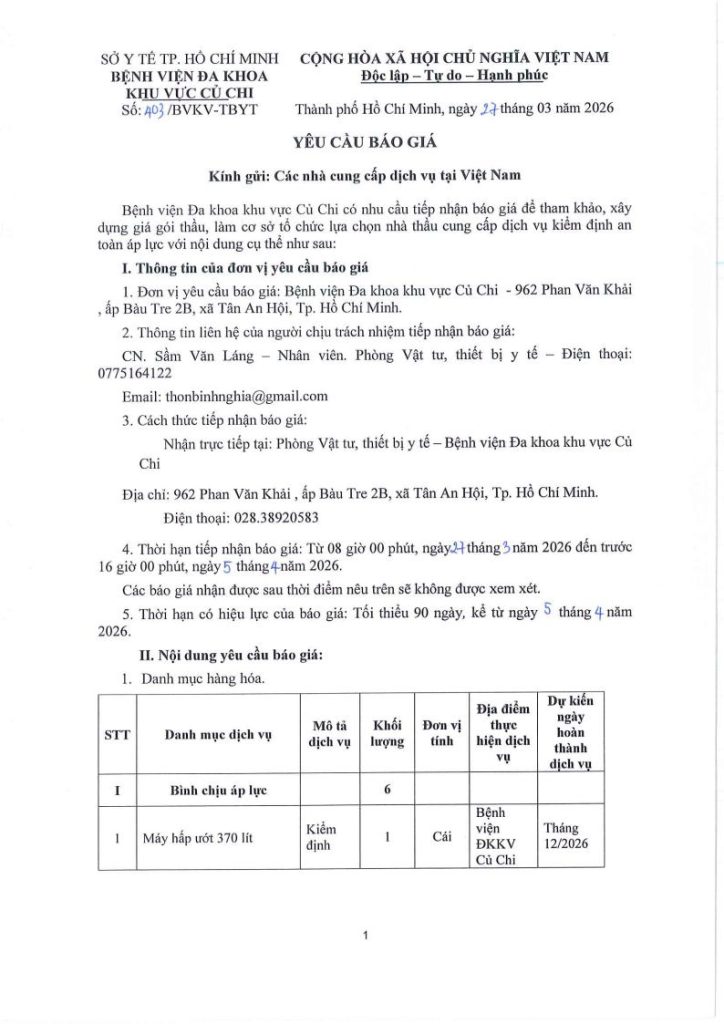 • Thư mời báo giá (57/TM-BVKV-HCQT)