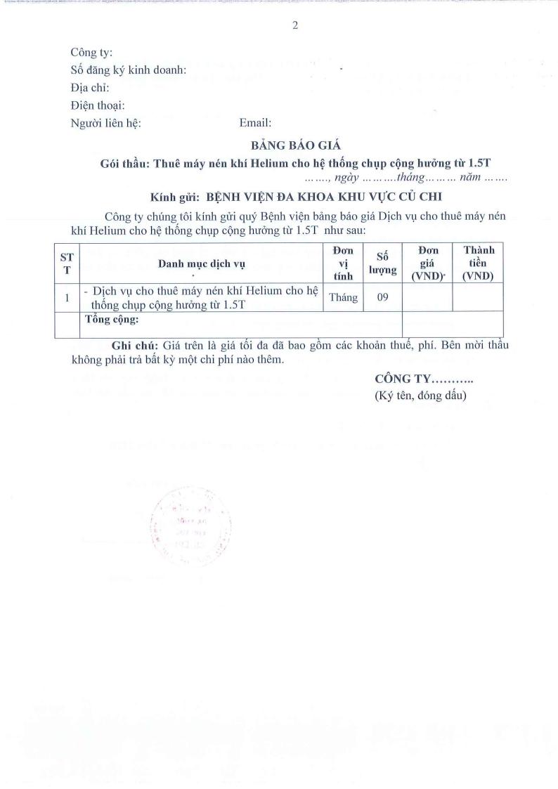 • Thư mời báo giá (41/TM-BVKV)