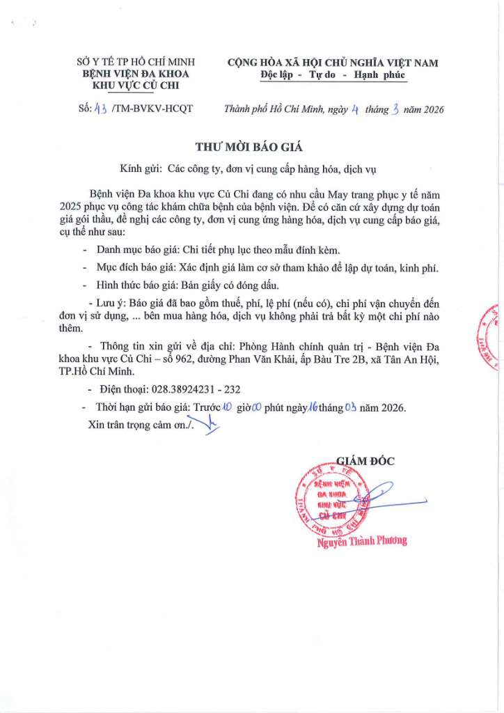 • Thư mời báo giá (43/TM-BVKV-HCQT)