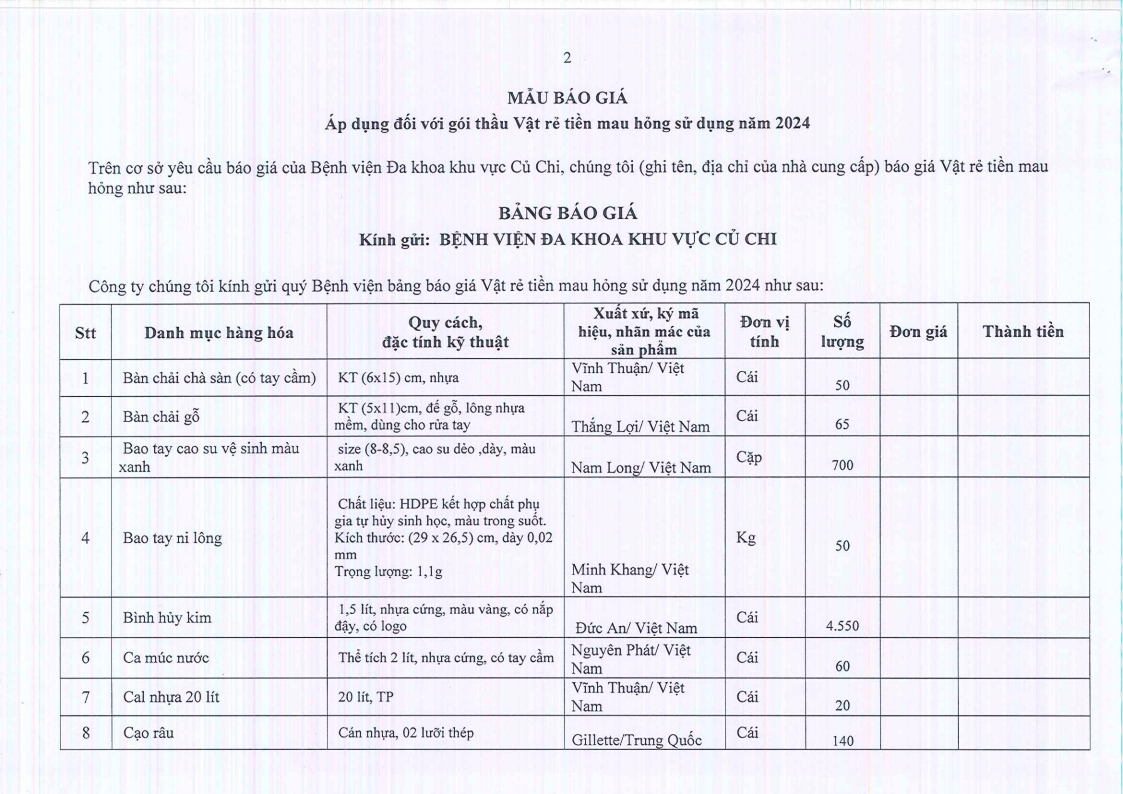• Thư mời báo giá (136/TM-BVKV) Chức năng bình luận bị tắt ở Thư mời báo giá (136/TM-BVKV)