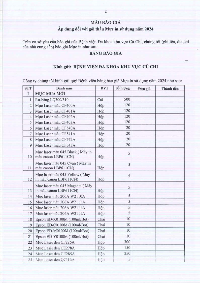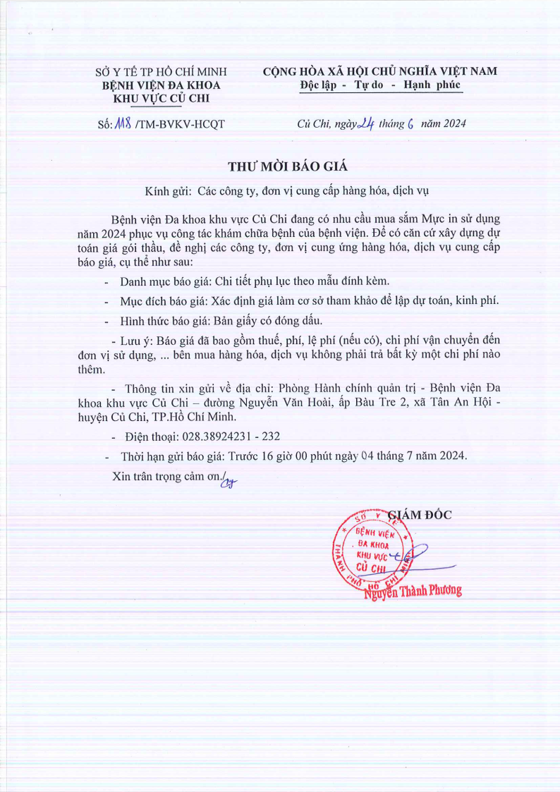 • Thư mời báo giá (136/TM-BVKV) Chức năng bình luận bị tắt ở Thư mời báo giá (136/TM-BVKV)