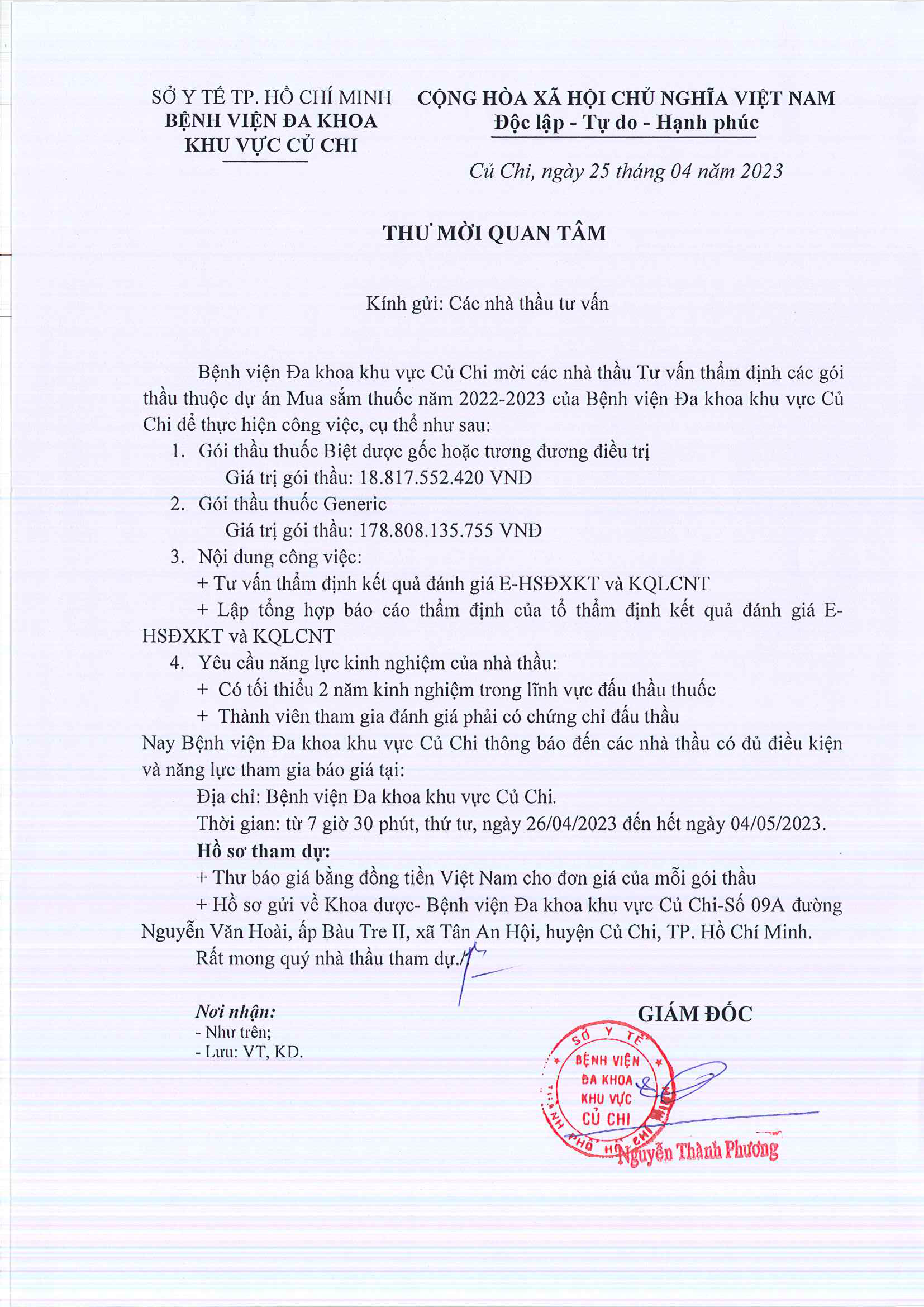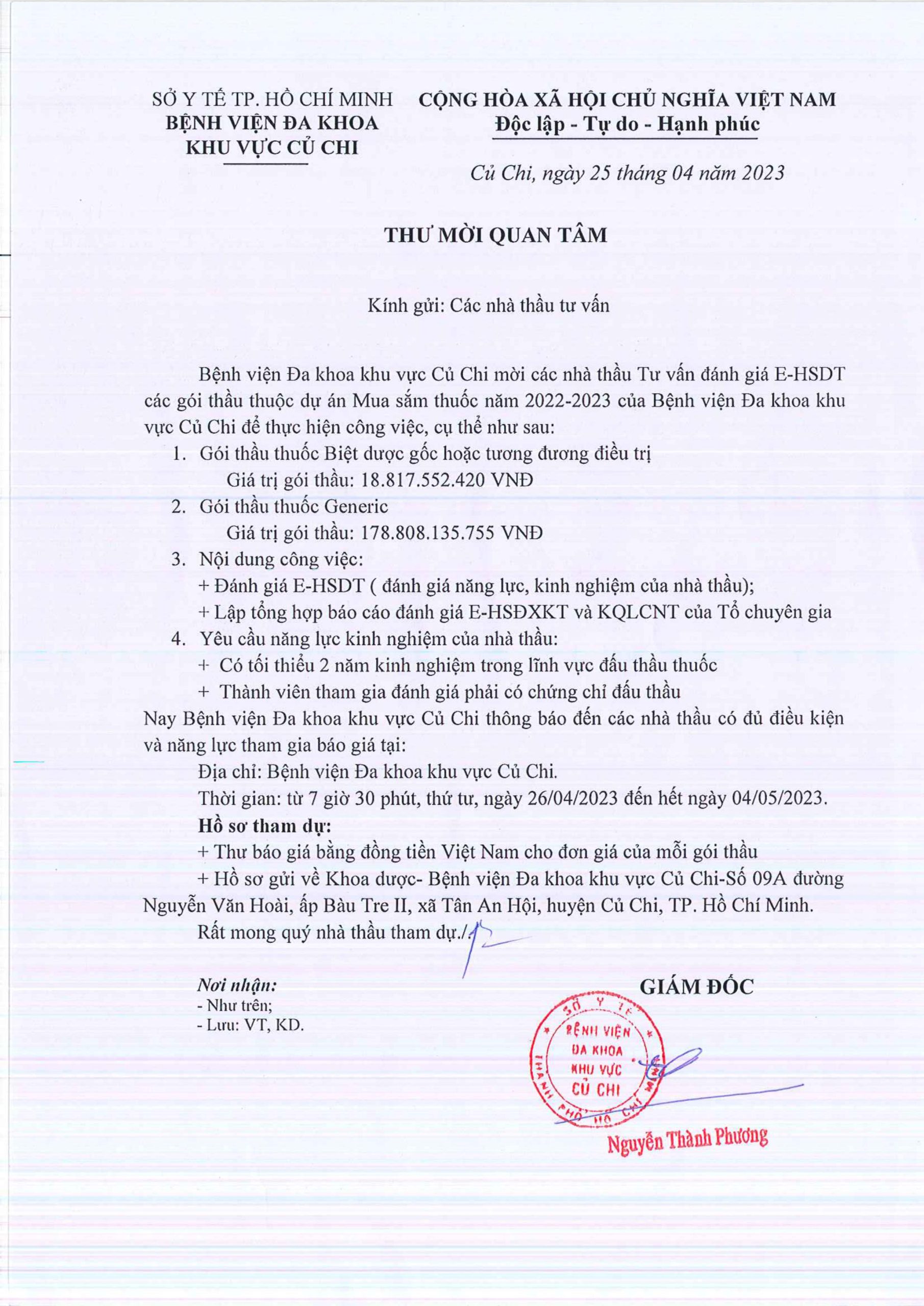 THƯ MỜI QUAN TÂM