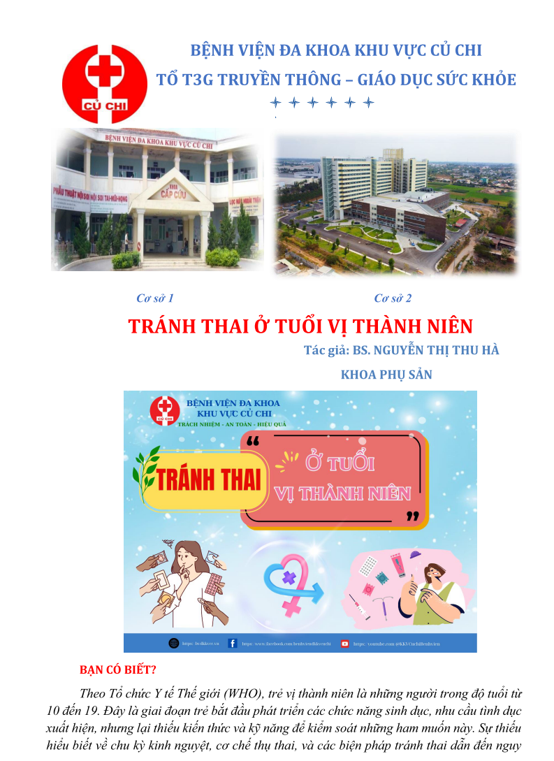 Trang chủ » Tin tức » Truyền Thông Giáo Dục Sức Khỏe » TRÁNH THAI Ở TUỔI VỊ THÀNH NIÊN