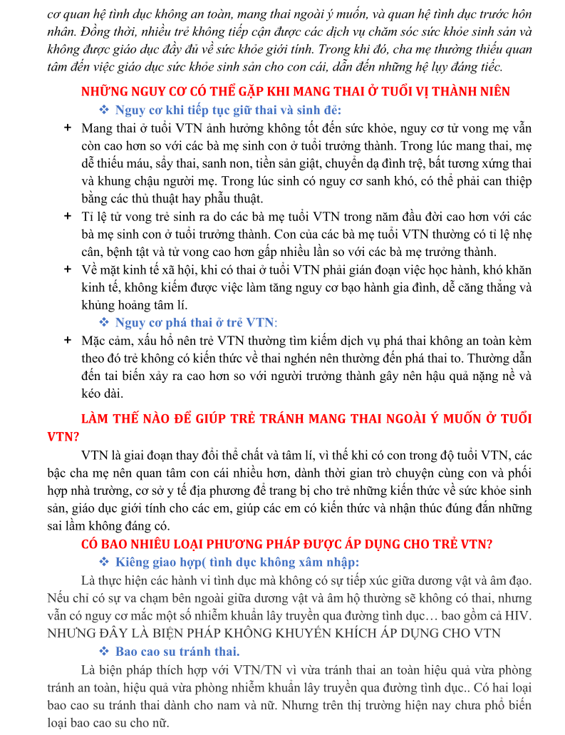 TRÁNH THAI Ở TUỔI VỊ THÀNH NIÊN