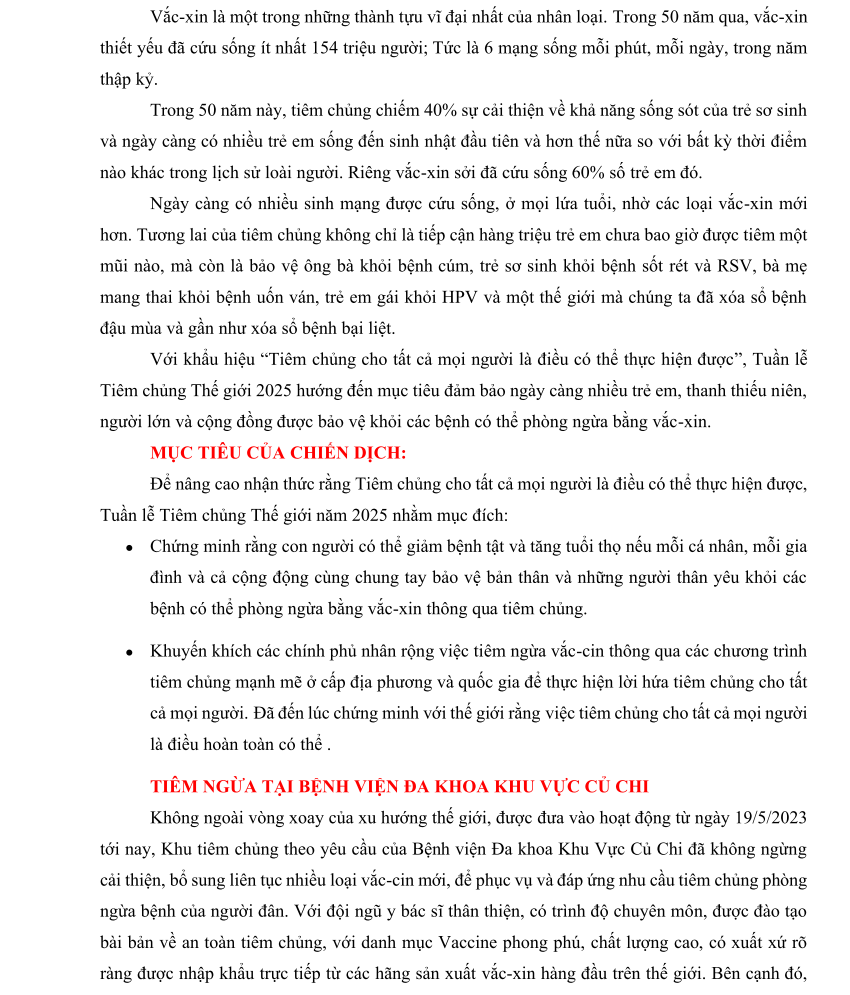 TUẦN LỄ TIÊM CHỦNG THẾ GIỚI