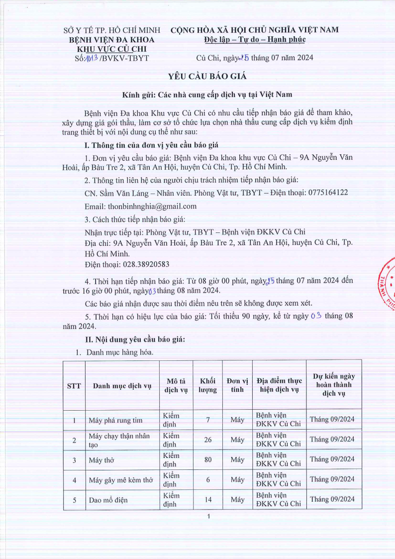 • Thư mời báo giá (135/TM-BVKV)