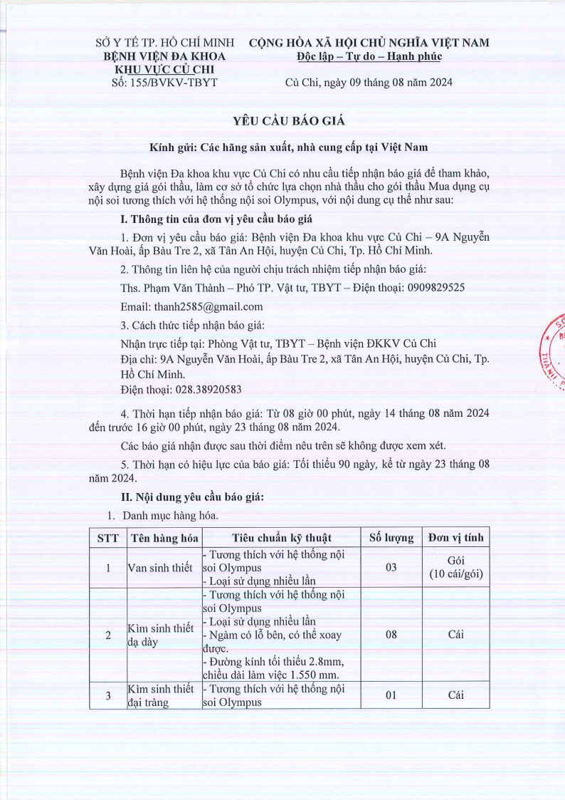 • Thư mời báo giá (136/TM-BVKV) Chức năng bình luận bị tắt ở Thư mời báo giá (136/TM-BVKV)